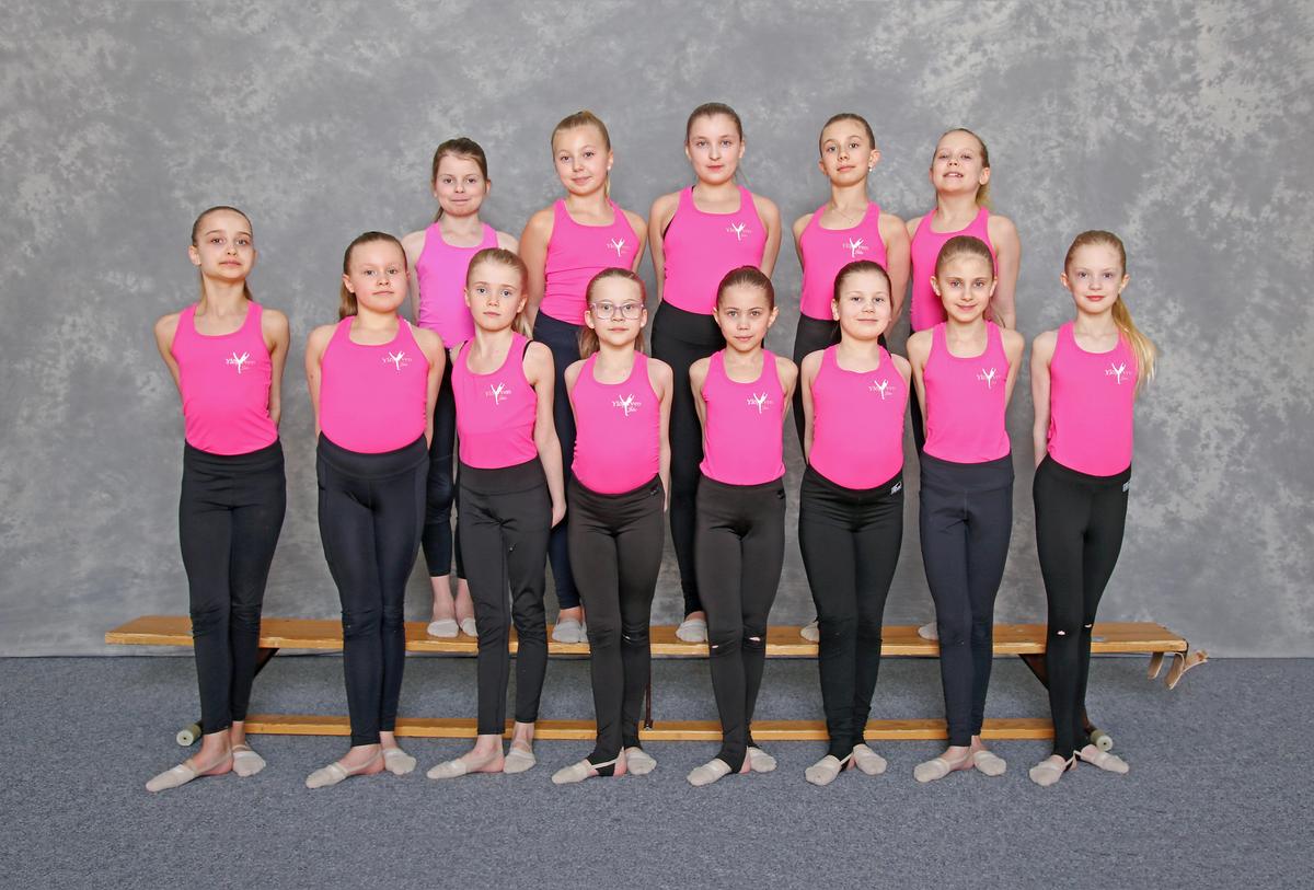 Aureliassa voimistelee neljätoista vuosina 2014-2017 syntynyttä voimistelijaa. Joukkue harjoittelee kolme kertaa viikossa kaksi tuntia kerrallaan. Harjoituksissa opetellaan ahkerasti voimistelun perustaitoja, joukkueena toimimista ja kauden kilpailuohjelmaa.